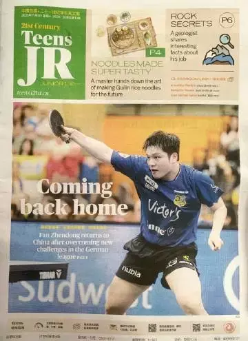 近日,隶属《中国日报社》的英文媒体《21世纪英文报》(21st Century Teens)以封面东说念主物体式报说念中国乒乓球知晓员樊振东。